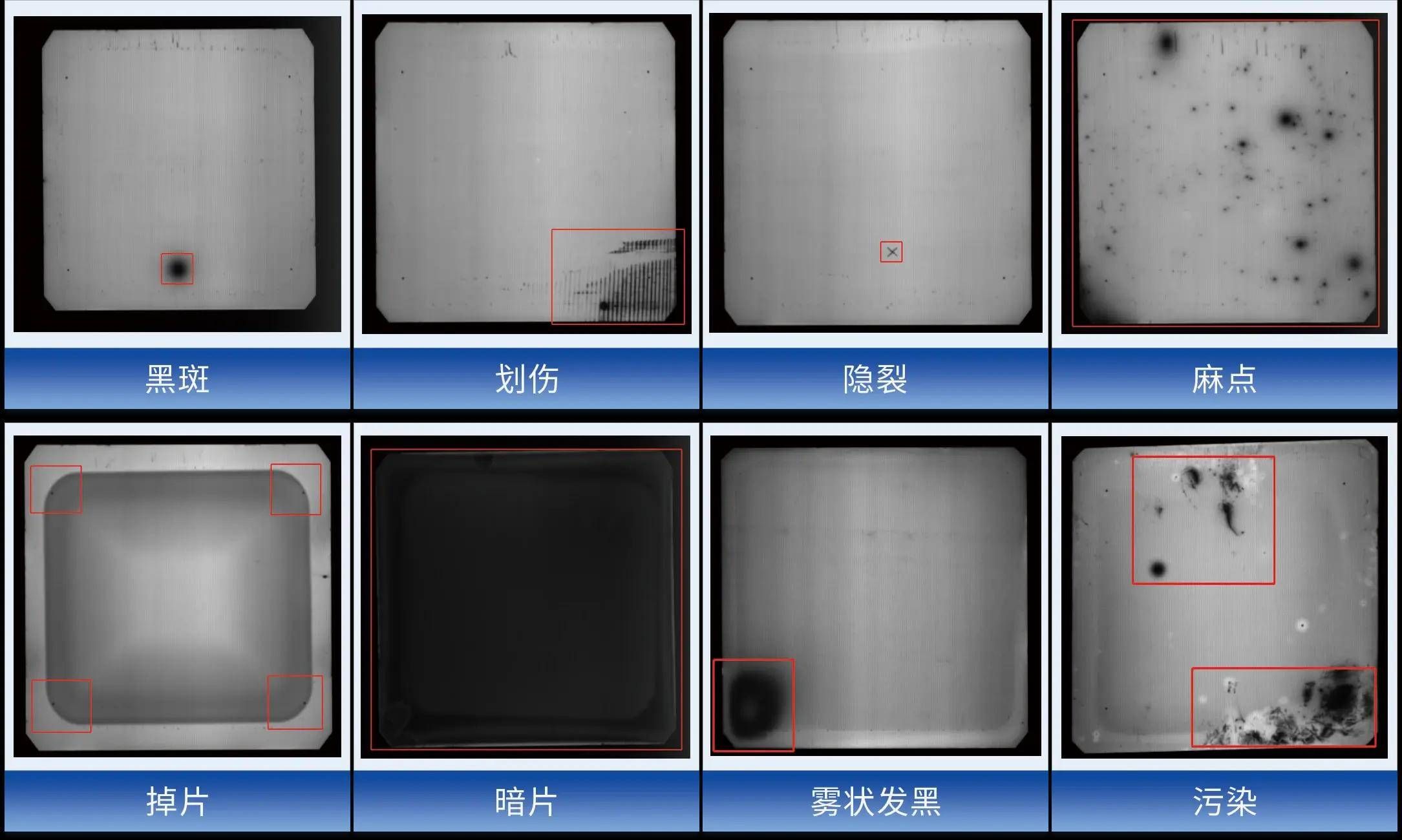 | 隐裂检测 | 微裂纹、隐裂 | 电池片内部或表面肉眼不可见的裂纹 |