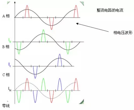 实际上,零线电流过大的现象现在越来越普遍。为什么三相电的负荷平衡,零线上却还是会出现电流,并且电流达到相线电流的150%以上呢?这是由于整流电路导致的。