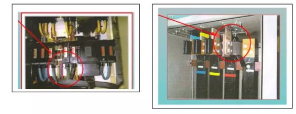 由于现代电气负荷大多数为整流电路负载,因此即使三相负荷平衡,零线上也会有较大的电流。零线电流过大的危害十分严重,主要是因为两个方面的原因,第一,零线的截面积并不比相线大,超过相线的电流必然会导致零线过热;第二,零线上没有保险装置,不能象相线那样在过流的清况下自动断开。因此,零线上过大的电流构成了巨大的火灾隐患。图3是开关柜中零线电流过大导致过热的情况。